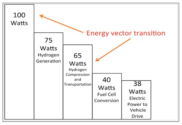 Bottom line: EVs are more than twice as efficient in utilising their energy. Hydrogen’s efficiency is simply constrained by the laws of science