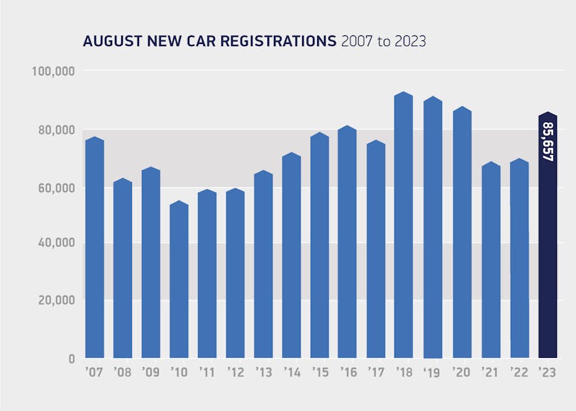 August is typically a quieter month for new car registrations, with many buyers choosing to wait until the September number plate change, however an increase of 16,799 units means the sector is now entering a second year of growth.