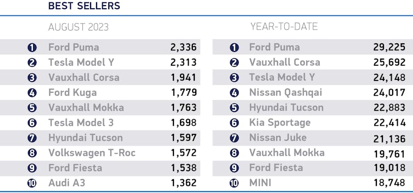The Tesla Model Y was the second best-selling car in August, with the Tesla Model 3 at number six. The Tesla Model Y is also the third best-selling car in terms of the year to date.