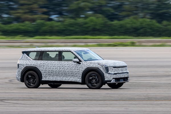The latest photos released by Kia show the EV9 as a boxy SUV undertaking a range of testing both on and off-road, suggesting that it may have decent 4x4 capability.