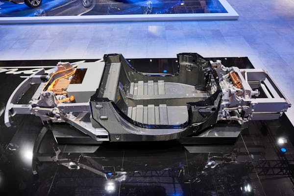 The Maserati GranTurismo Folgore performance car features a platform developed from Formula E with a ‘T-shaped’ battery, with no battery cells positioned under passengers in order to ensure the lowest possible center of gravity.