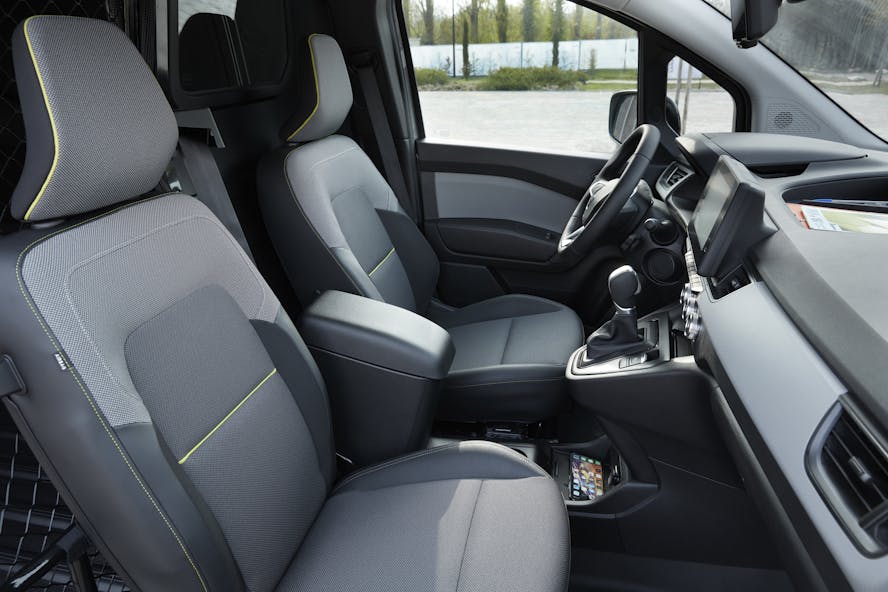 The Kangoo Van E-Tech electric will be available with three front seats with a central folding backrest that can help to provide a mobile office, and there’s almost 60 litres of storage in the cab.