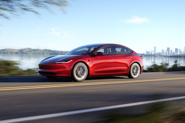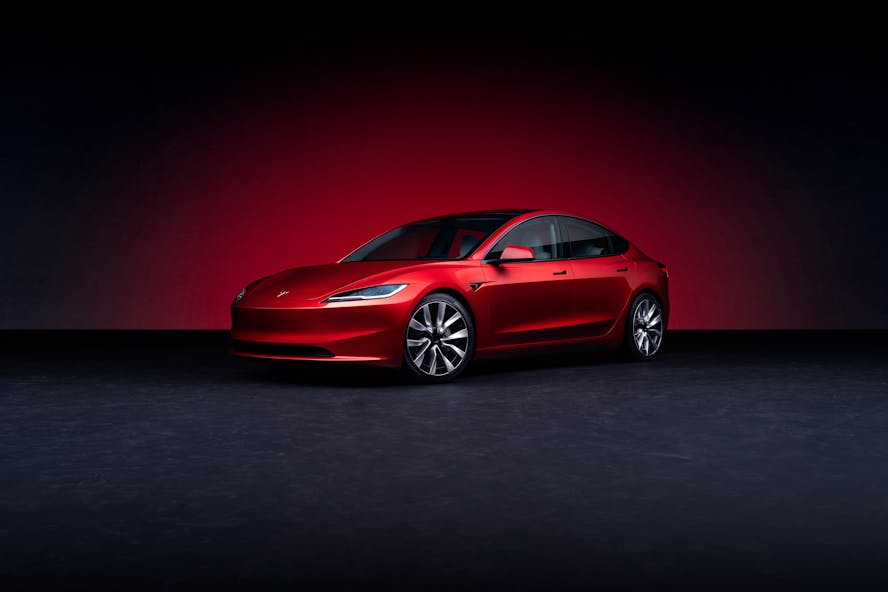 The upgraded Tesla Model 3 is available in two new colours, Ultra Red and Stealth Grey.