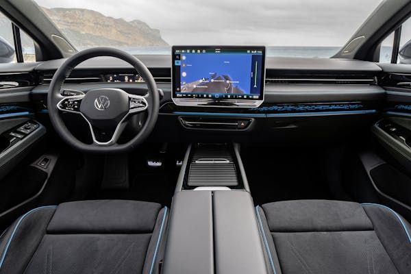 Also for the first time on a Volkswagen ID. model, operation of the air conditioning is integrated into the first level of the infotainment system, with the different functions of the air conditioning visible at all times on the screen.