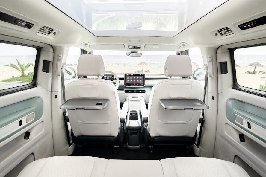 There’s also a new heat pump which increases efficiency in winter and a panoramic sunroof with electronically-controlled tinting - the largest of all Volkswagen models. Other new features of the electric VW bus include a head-up display, a next-generation infotainment system and remote parking via smartphone.