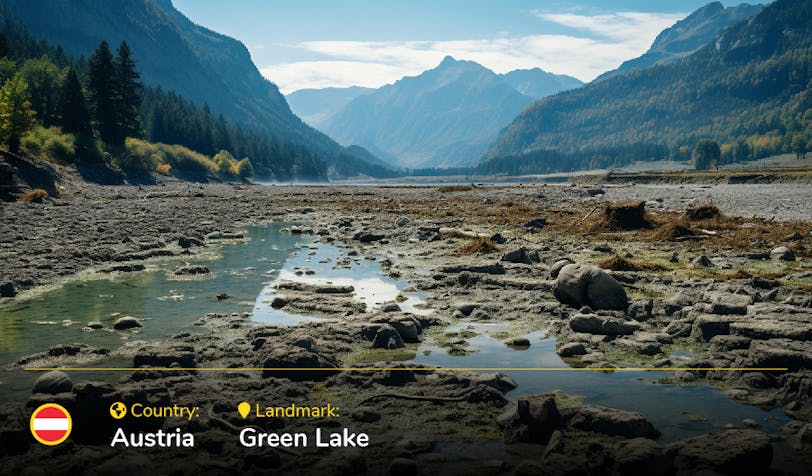During the Austrian winter, the lake dries up, and as temperatures increase, the snow melts in the surrounding mountains, filling the lake back up. Due to the purity of the water, it absorbs red light, making the surface a striking emerald green. However, with temperatures increasing and the ice caps in the Alps retreating one day, there may be no snow to melt, diminishing the lake and its gorgeous colour.