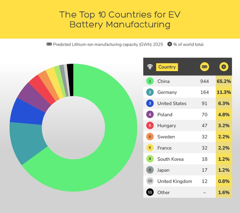 We collected the share of EV battery production by country for the top 10 producing countries using Visual Capitalist.