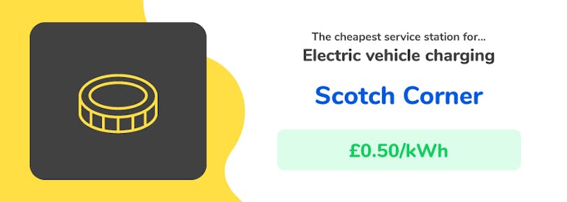 The cheapest service station for electric vehicle charging | Scotch Corner: £0.50/kWh
