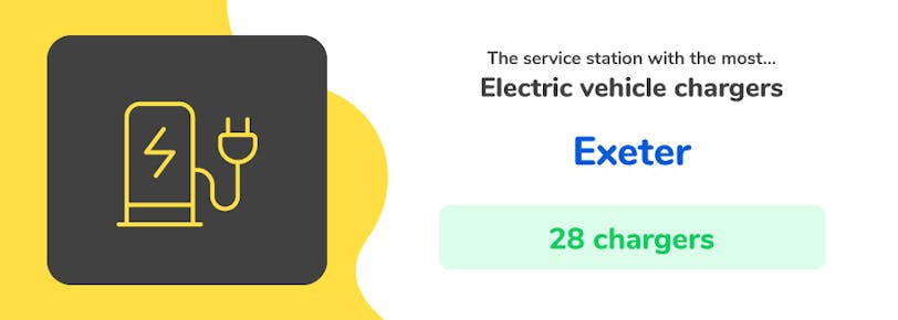 The service station with the most electric vehicle chargers | Exeter: 28 chargers