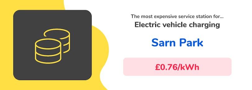 The most expensive service station for electric vehicle charging | Sarn Park: £0.76/kWh