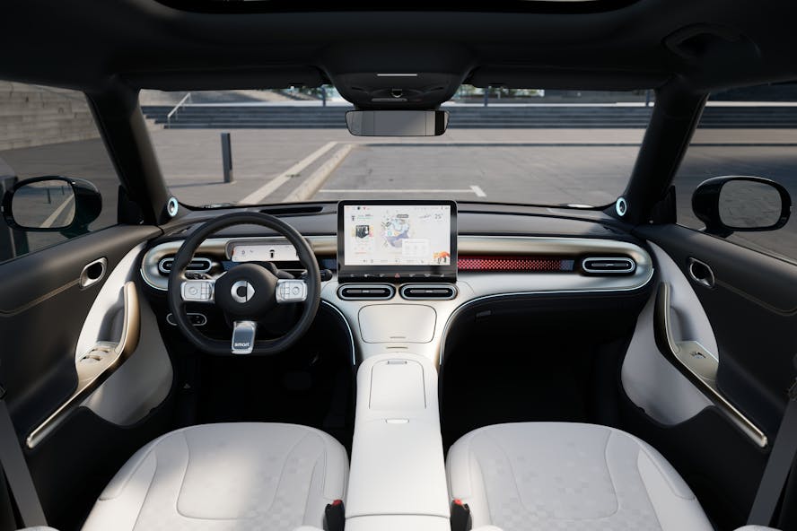 The main feature of the interior is a large 12.8-inch central touchscreen, and a prominent central tunnel containing lots of storage which runs between the two front seats. All smart #1 models have a 1,600 kg braked towing capacity.