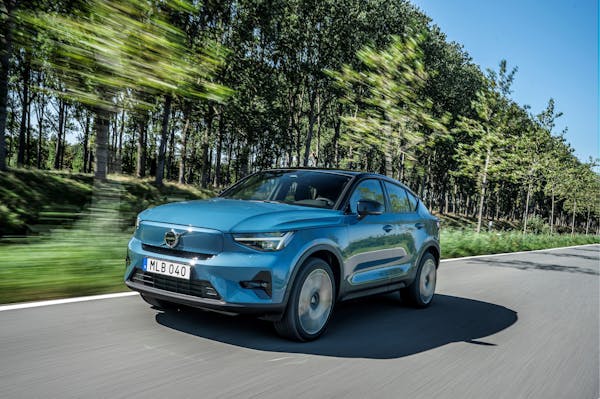 The Volvo C40 Recharge shares the same powertrains as the XC40. That means that there’s a 69 kWh battery for the front-wheel drive Recharge, and a larger 78 kWh battery for the all-wheel drive Recharge Twin.